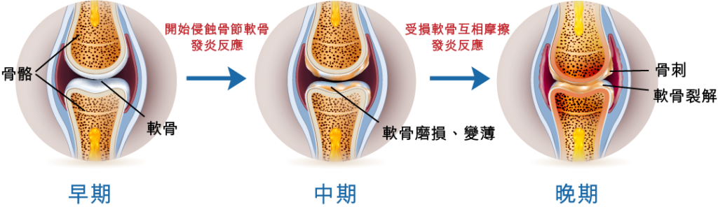膝關節退化炎(醫學名稱:膝骨關節炎,Knee Osteoarthritis)不少人將膝關節退化與年齡增長劃上等號,但膝關節炎帶來的困擾並非長者專利。有調查發現^,每10名港人中有近9人有關節問題,30歲或以上香港居民受訪者中,最常見問題部位是膝。退化性關節炎近年有年輕化趨勢,主要可能與生活方式不當、缺乏運動、運動創傷、體重過重及飲食習慣等有關。患者一旦忽視退化性關節炎,或會使關節嚴重變形,行動不便,甚至影響活動能力。退化性膝關節炎由不同成因引起,包括: